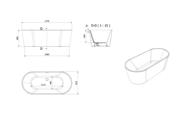 Ellipse badekar er helstøpt og har ikke avtagbart frontpanel.