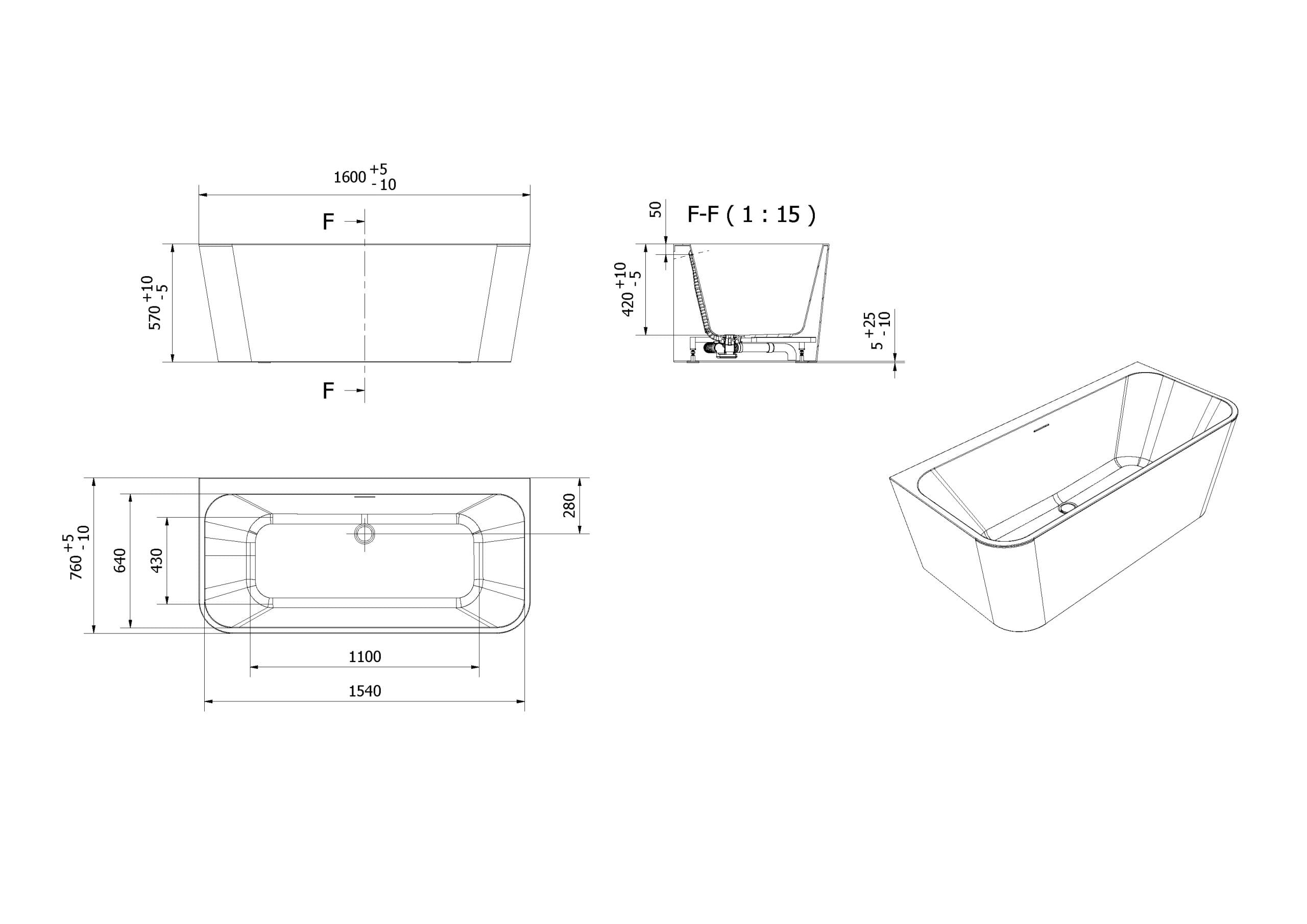 - 160 × 75 × 57 cm, innvendig dybde 42 cm til overløp / 47 cm til topp – god senkedybde i kompakt format.