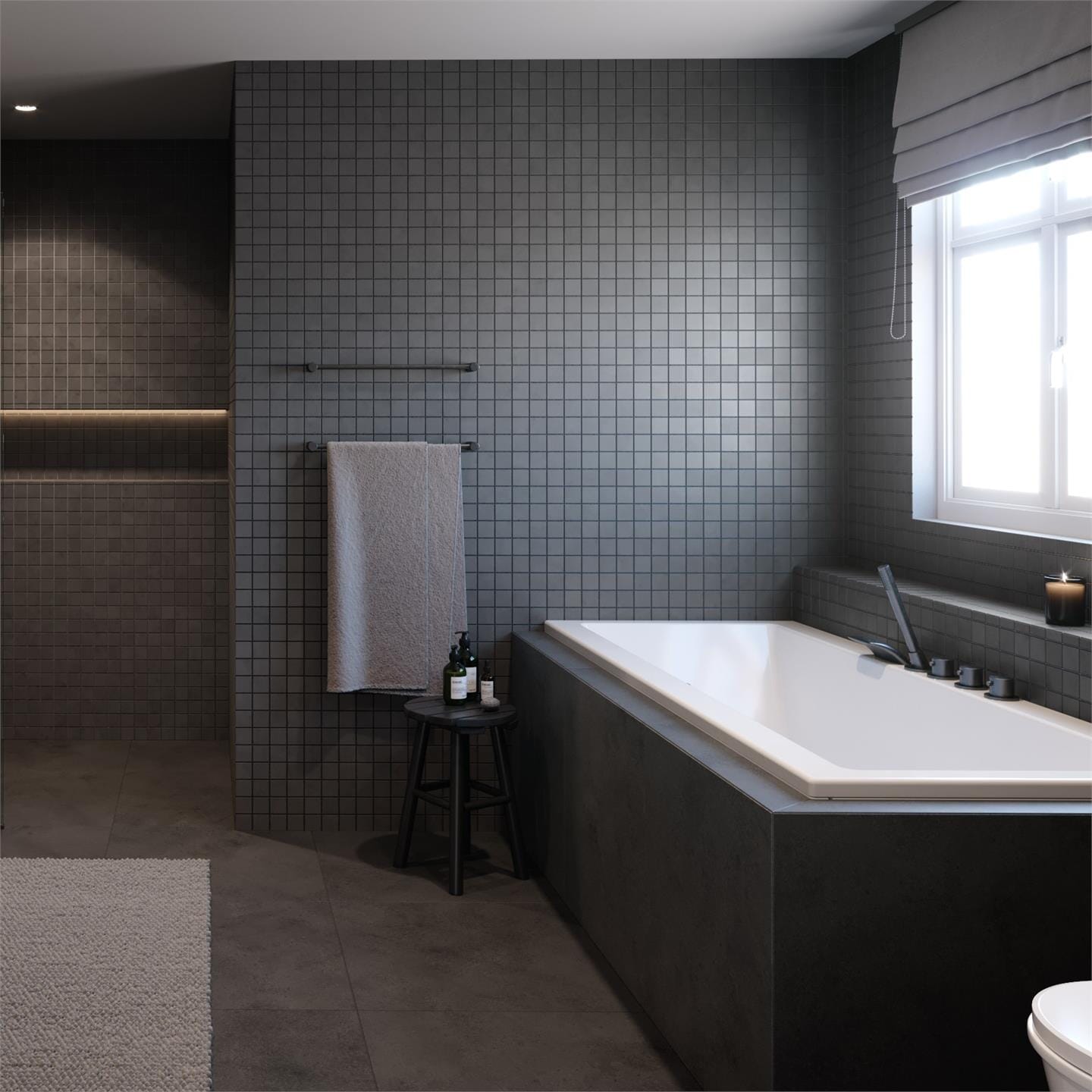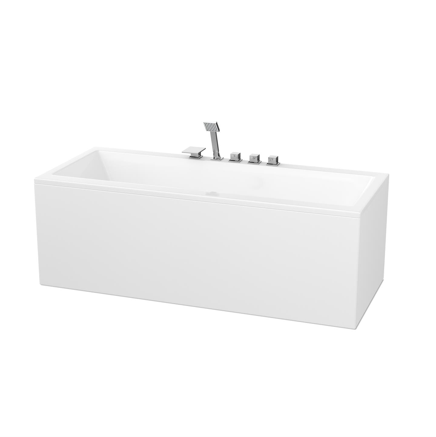 Et stilrent og minimalistisk badekar med mulighet for innbygging og karkantbatteri.