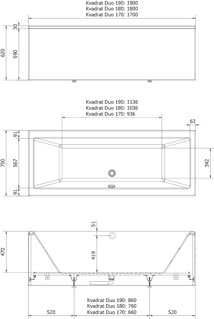 OBS: Dette er kun rent badekar, uten front- eller endepanel.