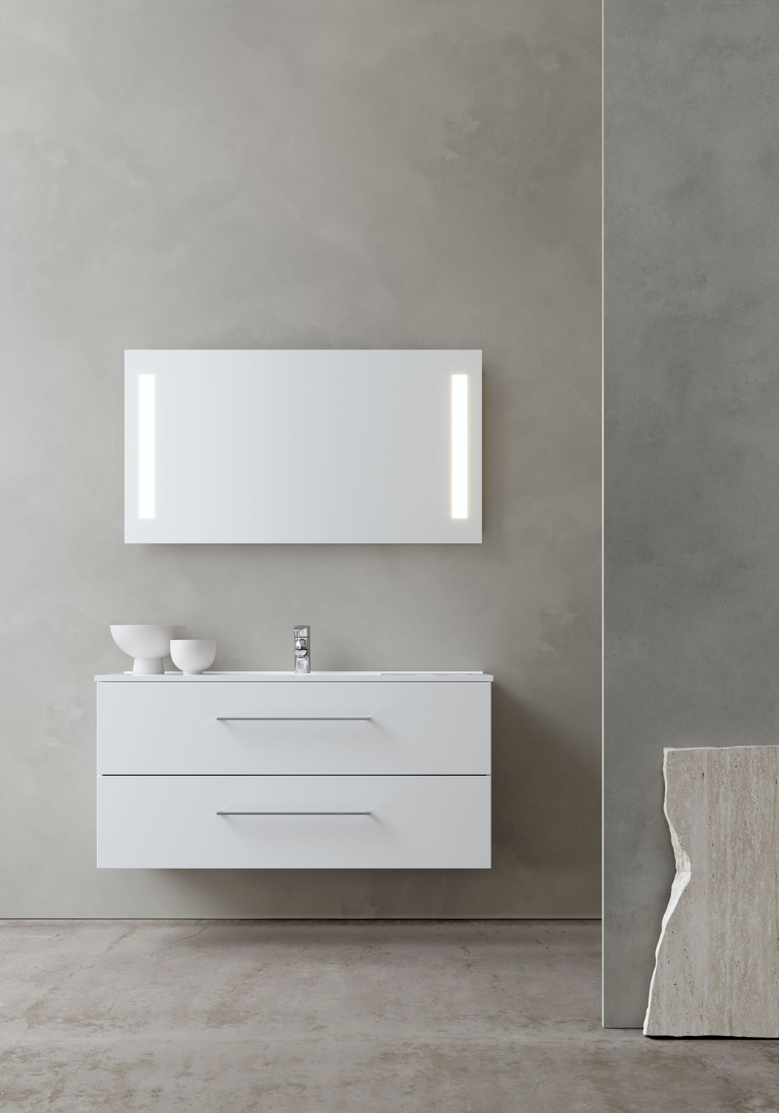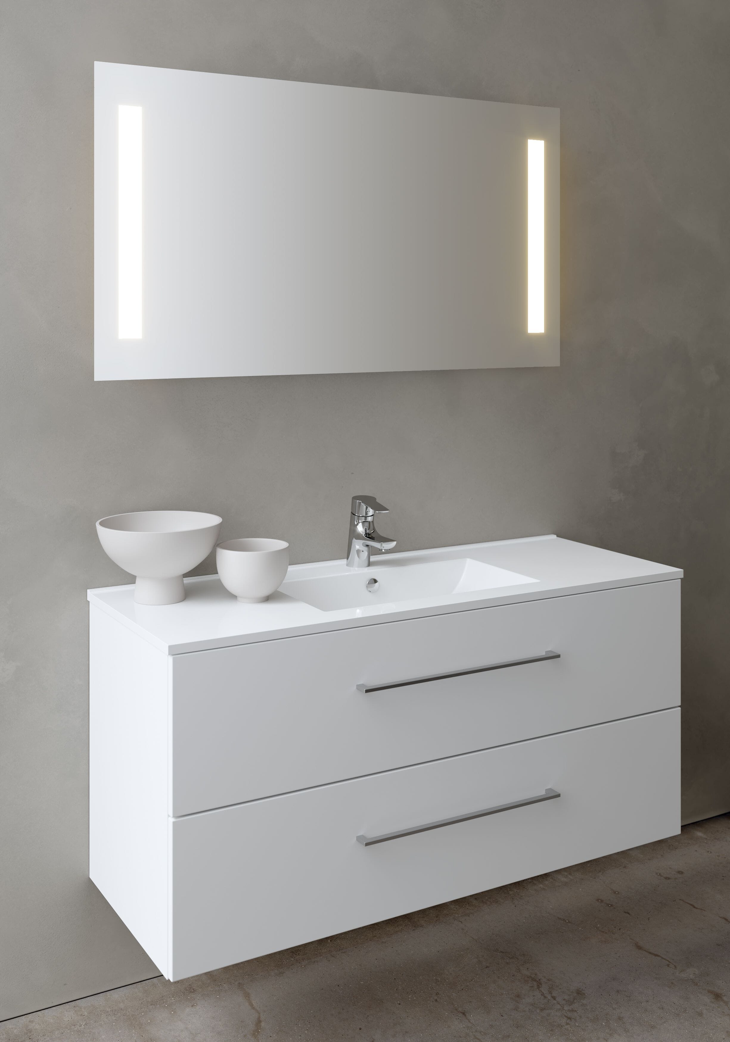 HILDE baderomsmøbel i hvit matt 120 cm inkludert Brage servant i mineralkompositt.