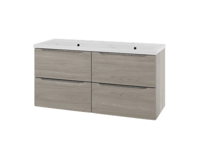 Mari servantskap leveres med innfelte grep i fronten. Dette gjør møbelet mer funksjonelt, samtidig som skaper et stilrent utseende. Servantskapet tilbyr smarte løsninger for organisering med muligheter for skuffeinnlegg, lys og stikkontakt, skuffematter og glassinndeling. Alt designet for å gi deg en følelse