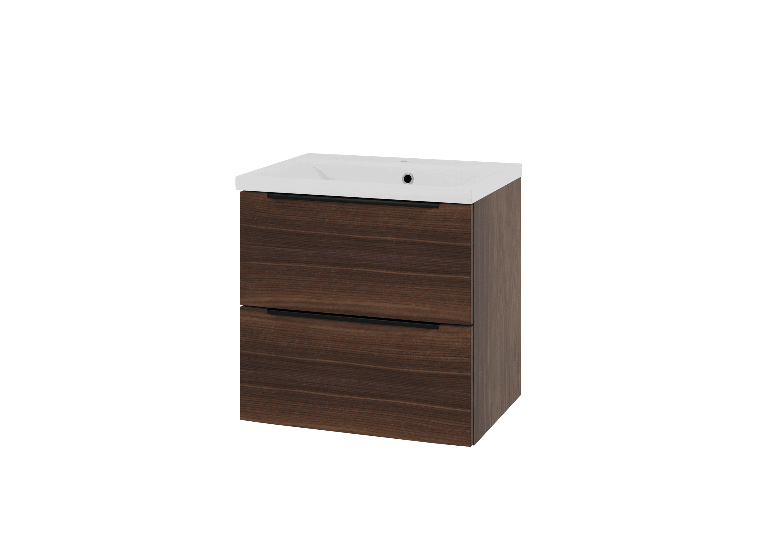 Møbelet kan også leveres med alternativt grep i svart dersom det er ønskelig, uten tillegg i pris. Dersom røropplegg avviker fra standard plassering kan skuffene leveres med grunn