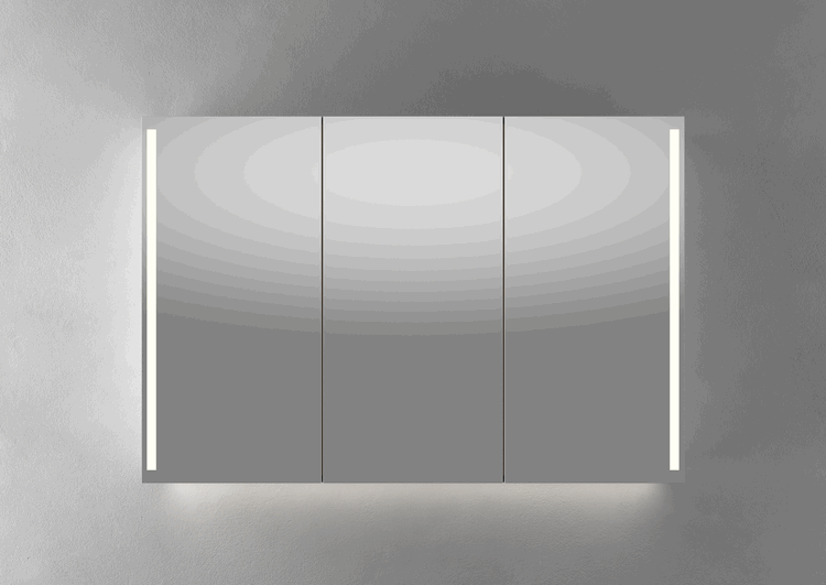 - Lys i dørene: Speilskapet har innebygd lys i dørene, som skaper et funksjonelt og stilrent inntrykk både når skapet er åpent og lukket. Lyset bidrar til å belyse både innvendig og utvendig, uten synlige ledninger.
