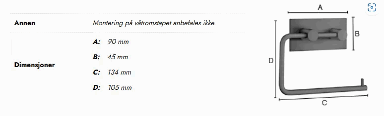 Merk: Det anbefales ikke å montere produktet på våtromstapet eller veggteppe,