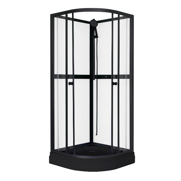 Dusjkabinett Aurora Round Black 90 x 90 er et flott dusjkabinett med sort ramme som egner seg like godt på hytta som hjemme.