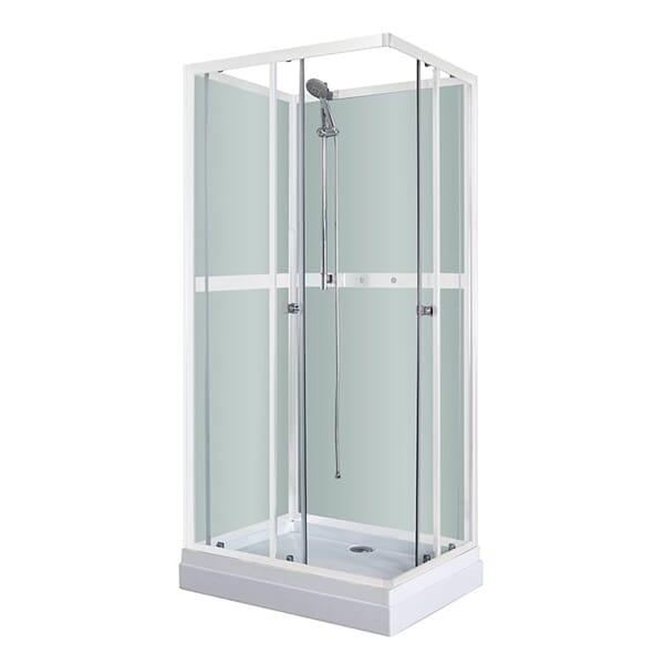 Dusjkabinettet har profiler i hvitlakkert aluminium, og en solid og stødig konstruksjon.