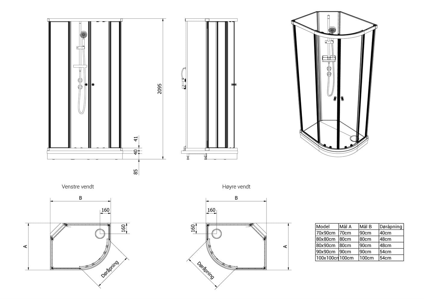 Stilrent dusjkabinett med rette, enkle linjer og vippbare dører som gjør det svært enkelt å rengjøre. Dører med doble trinser oppe og nede for jevn og stabil gange ved åpning og lukking.