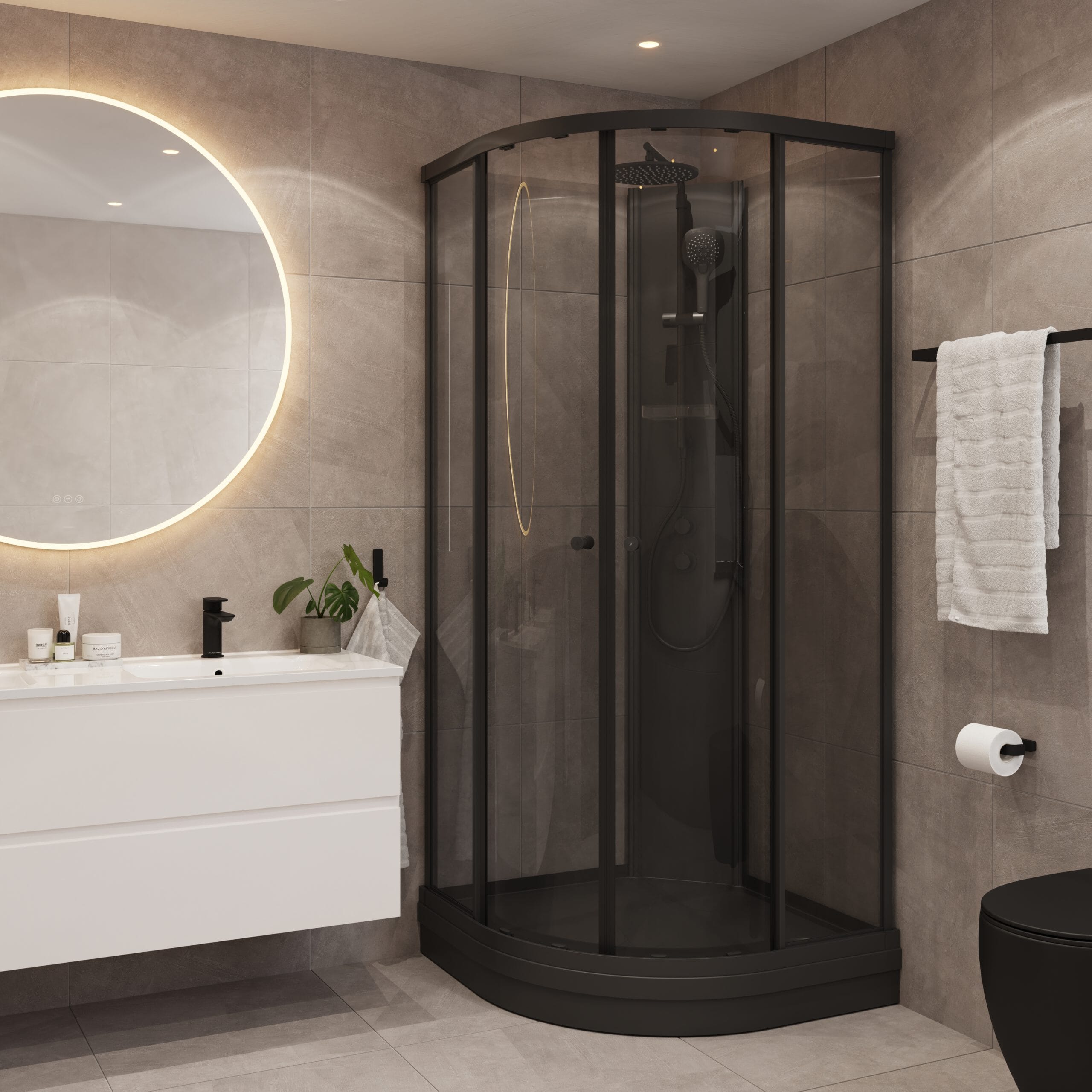 Sofia Pluss er utviklet for å gjøre hverdagen enkel: vippbare dører og glatte flater gjør rengjøringen rask, og den stabile akrylbunnen gir trygg følelse under dusj. Den integrerte løsningen med termostat, toppdusj og hånddusj gjør at du får alt du trenger i ett kabinett, uten ekstra tilpasninger. Designet med rette linjer og sorte detaljer gir et moderne uttrykk som passer både i nybygg og renoverte bad.
