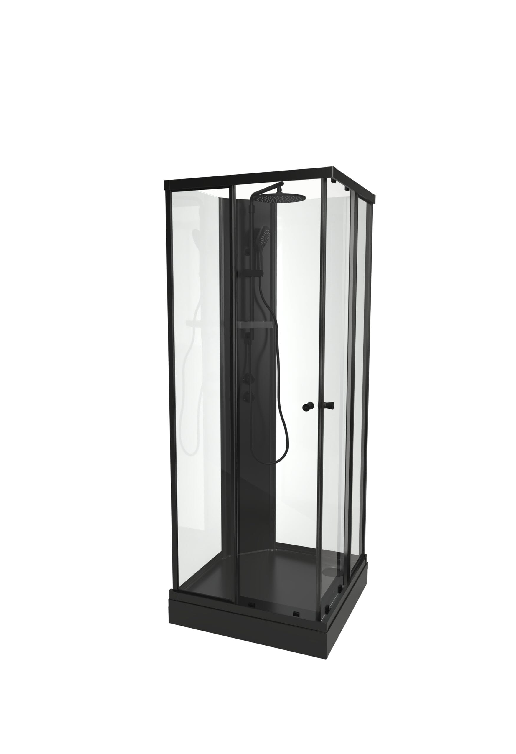 Sofia-serien er laget for hverdagskomfort: rette dører gir god plassutnyttelse i små rom, mens vippbare dører og glatte flater gjør renholdet raskt og enkelt. Den komplette pakken med termostat, toppdusj og hånddusj betyr færre innkjøp og en smidig montering. Den kontrastfulle kombinasjonen av sorte profiler, hvit søyle og klare bakglass passer like fint i et nytt, moderne bad som ved oppgradering av hytta.