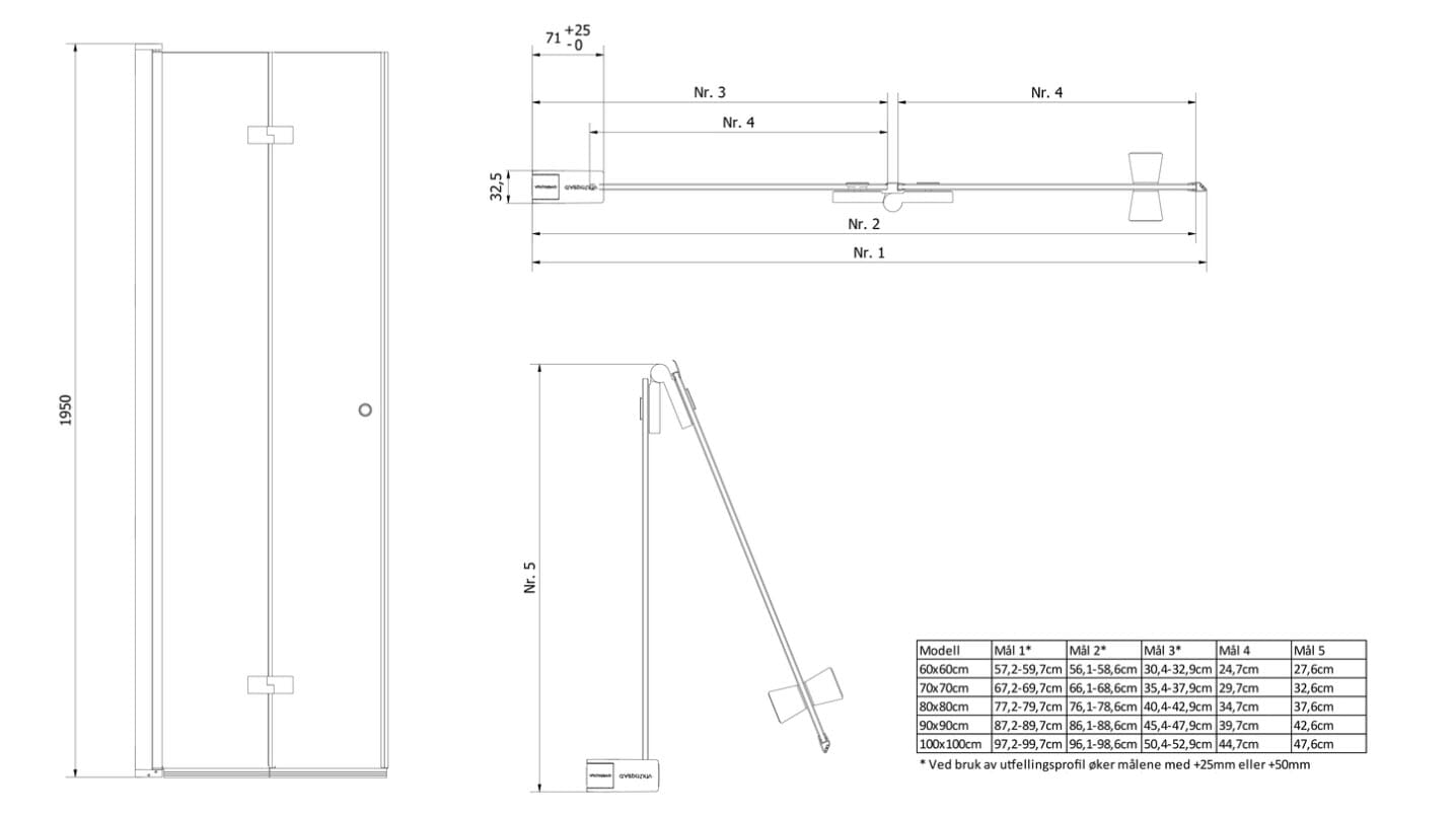 Veggprofil kan justeres 25 mm