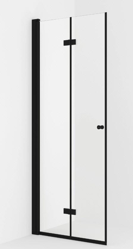 LIAM 60cm venstre leddet dusjdør med sorte profiler og klart herdet glass.