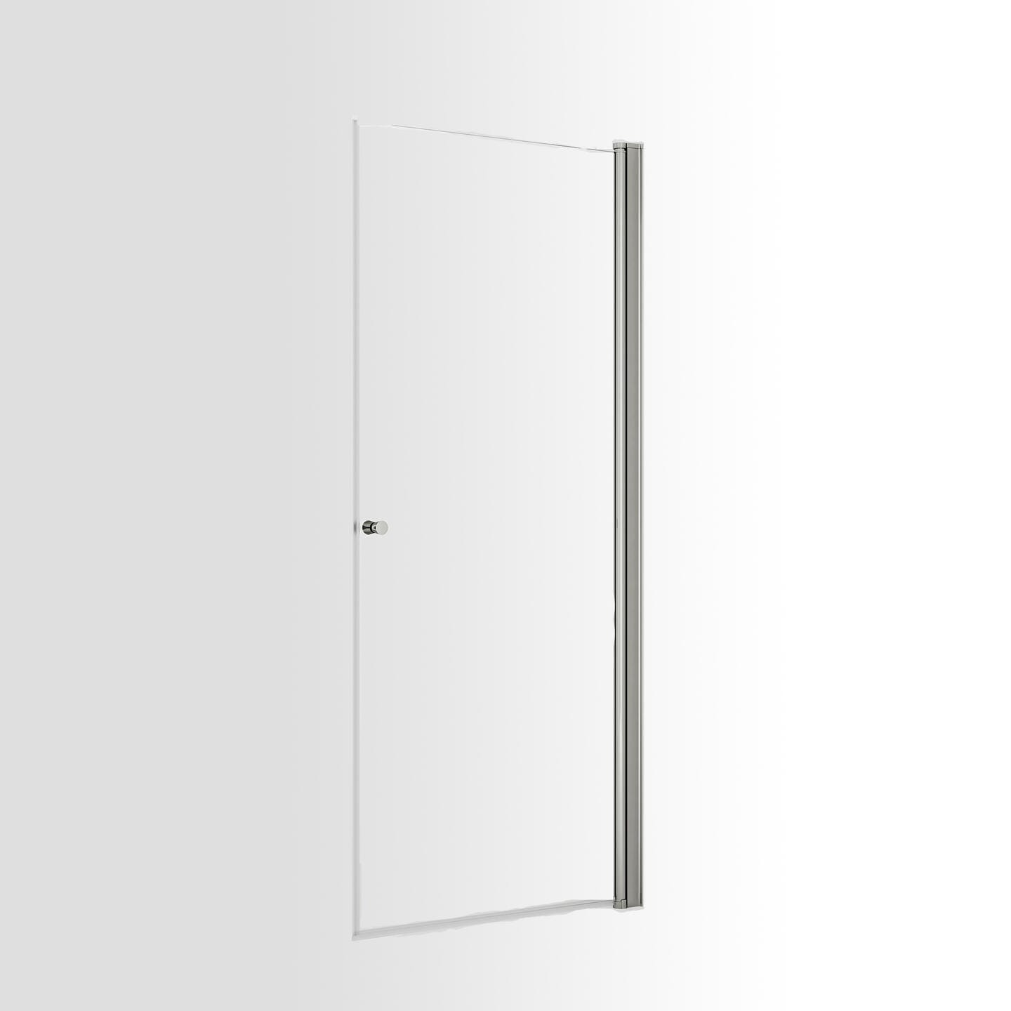 Universale dusjdører i glass med sølvprofiler som kan svinges 180°.