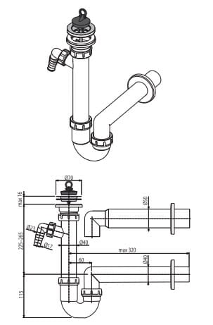 Vannlås 50mm for servant/kjøkken med tils.rør EcoBad