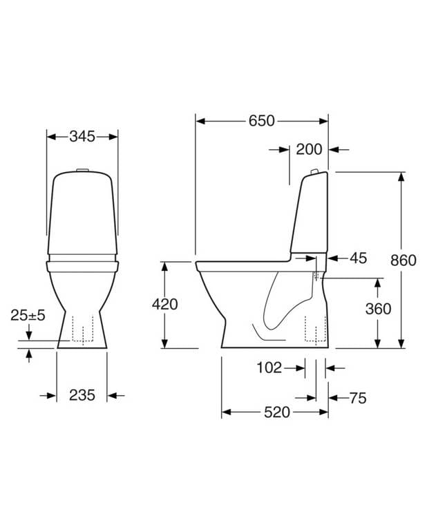 Gustavsberg 5500, uten skruehull, uten sete. Dobbelspyling.Gulvmontert.