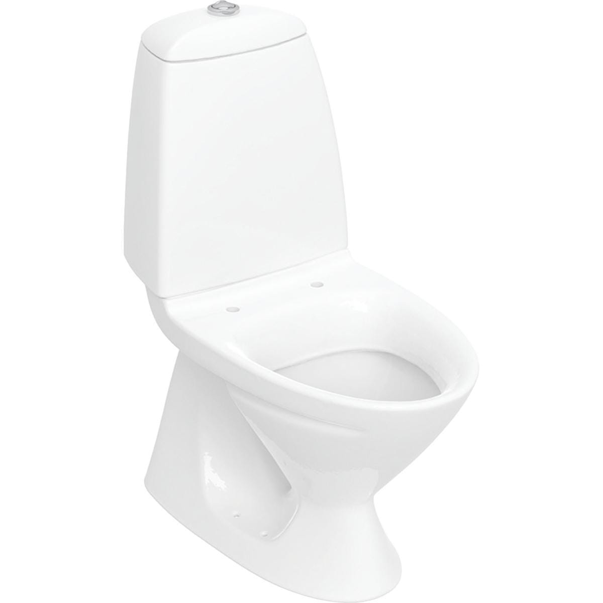 Gulvklosett med skjult S-lås. Skruehull i klosettfot. Hvit spyleknapp, liten og stor spylemengde, (4/2 liter). Tilkoblingsmansjett og monteringssett medfølger. Sittehøyde 400 mm. Med spylekant.