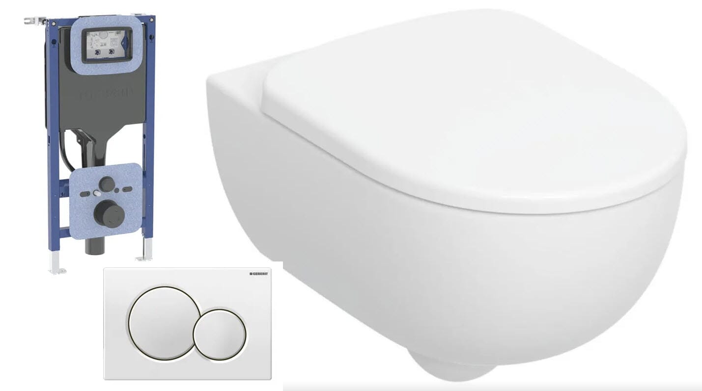 Geberit Sawa veggstativ inkludert hvit trykk knapp og Selnova veggskål.