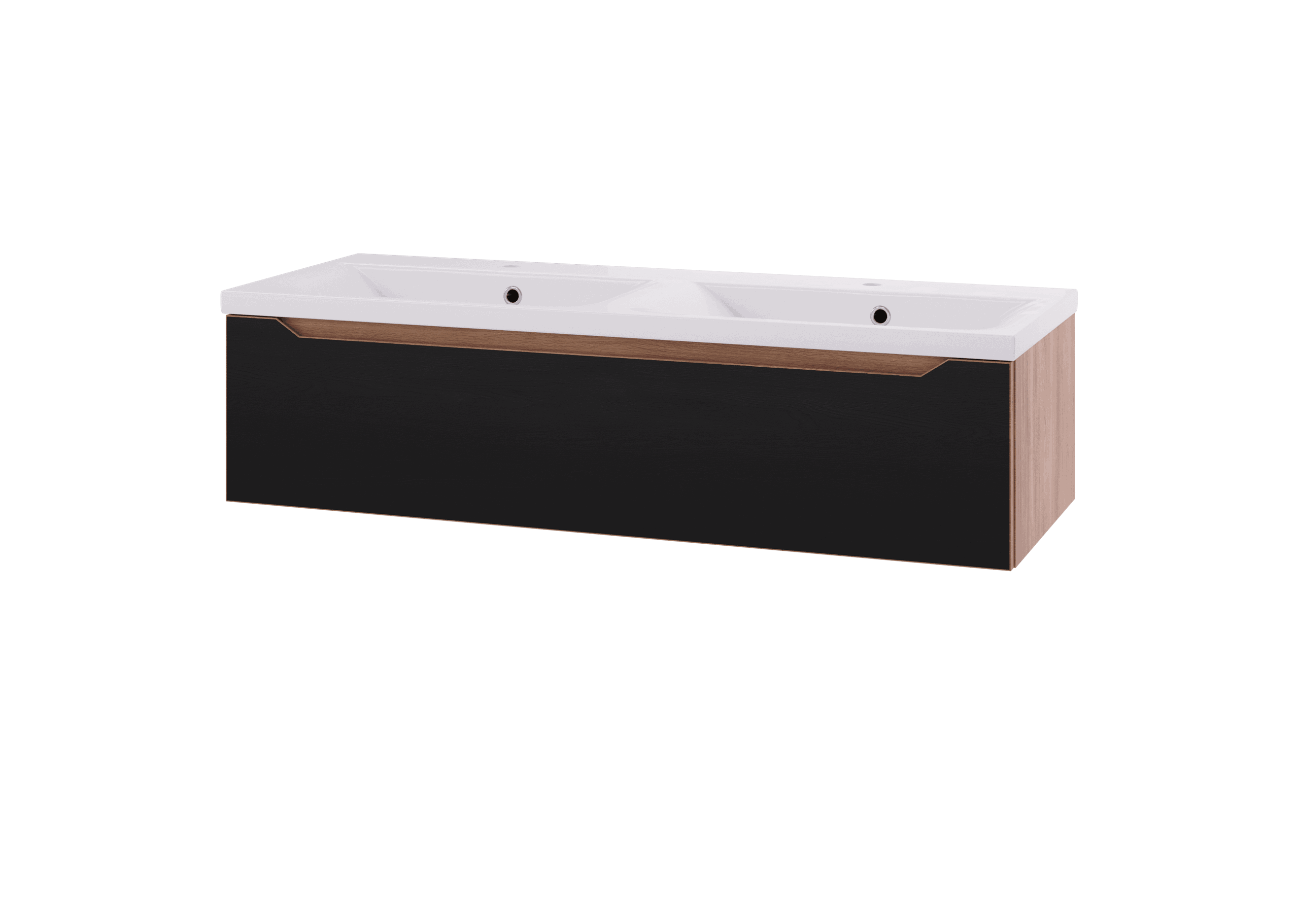 Emma leveres med integrerte håndtak, og leveres i Eik, Sort matt med Eik, Mørk eik