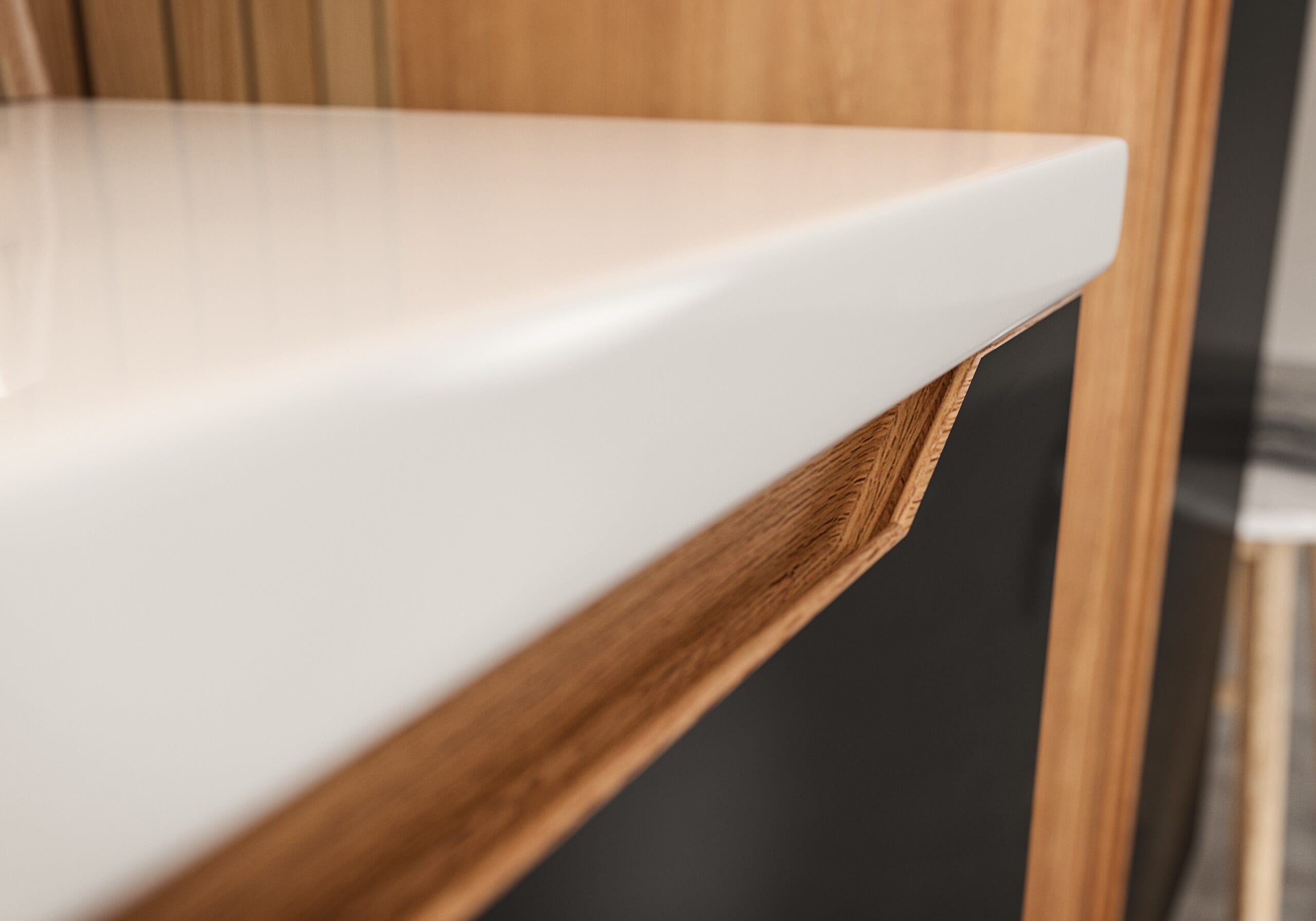 Emma leveres med integrerte håndtak, og leveres i Eik, Sort matt med Eik, Mørk eik