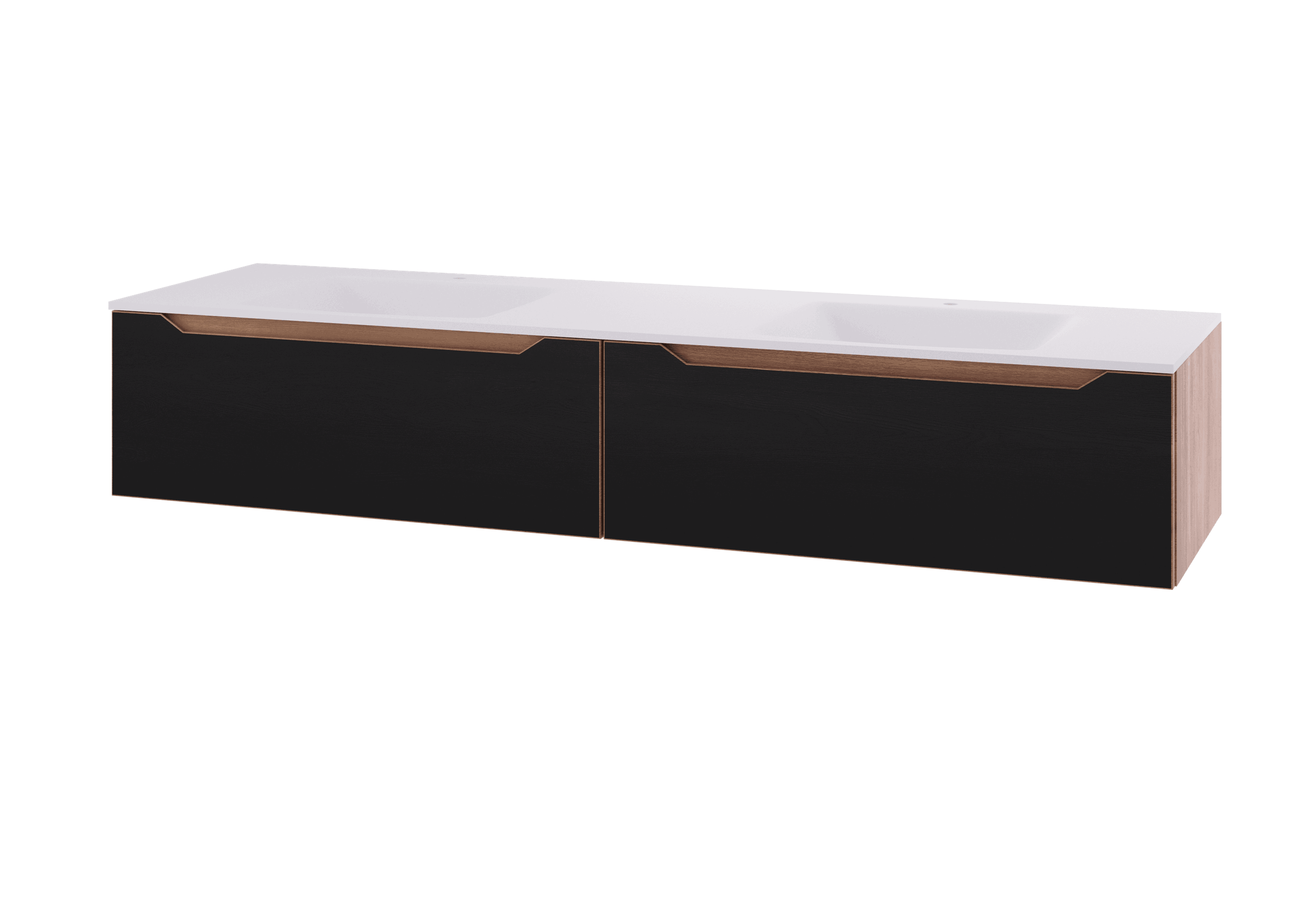 Emma leveres med integrerte håndtak, og leveres i Eik, Sort matt med Eik, Mørk eik