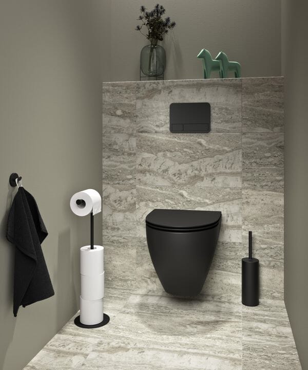 - Matt sort overflate som gir badet et moderne og eksklusivt uttrykk.