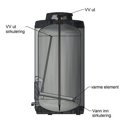 En Heat Injection varmtvannsbereder produserer kontinuerlig 70°C vann og legger det på toppen - klar til bruk.