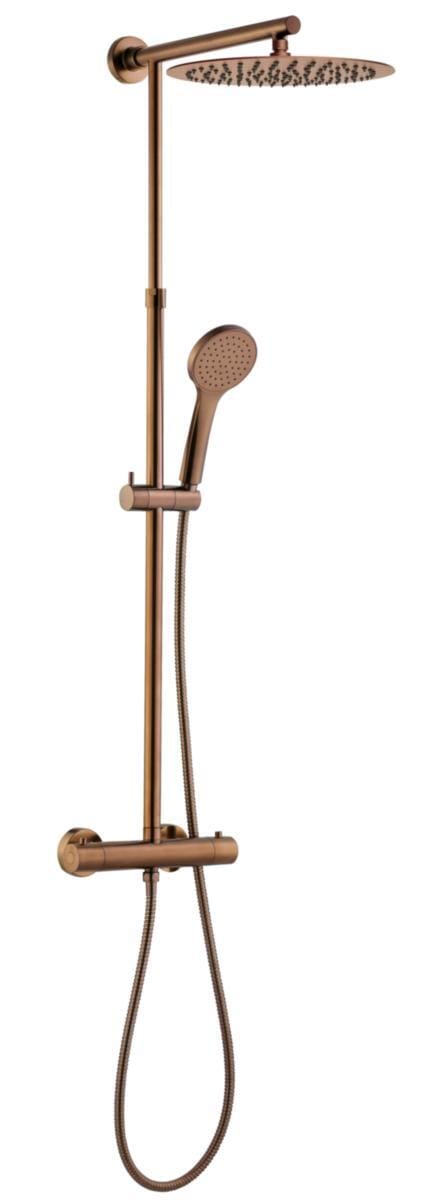Denne takdusjen kombinerer praktiske funksjoner med et tidløst design. Den børstede rosegull-fargen gir badet ditt en sofistikert og eksklusiv stil, mens den brukervennlige termostaten sikrer en komfortabel dusjopplevelse uten temperatursvingninger. Den store dusjhodet gir en jevn vannstrøm, noe som gjør den ideell for avslapning etter en lang dag.