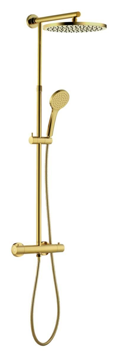 Denne takdusjen kombinerer praktiske funksjoner med et tidløst design. Gullfinishen gir badet ditt en sofistikert og eksklusiv stil, mens den brukervennlige termostaten sikrer en komfortabel dusjopplevelse uten temperatursvingninger. Den store dusjhodet gir en jevn vannstrøm, noe som gjør den ideell for avslapning etter en lang dag.