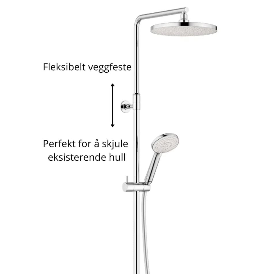 - Fleksibelt øvre veggfeste – smart ved utskifting, kan hjelpe å skjule eksisterende borehull