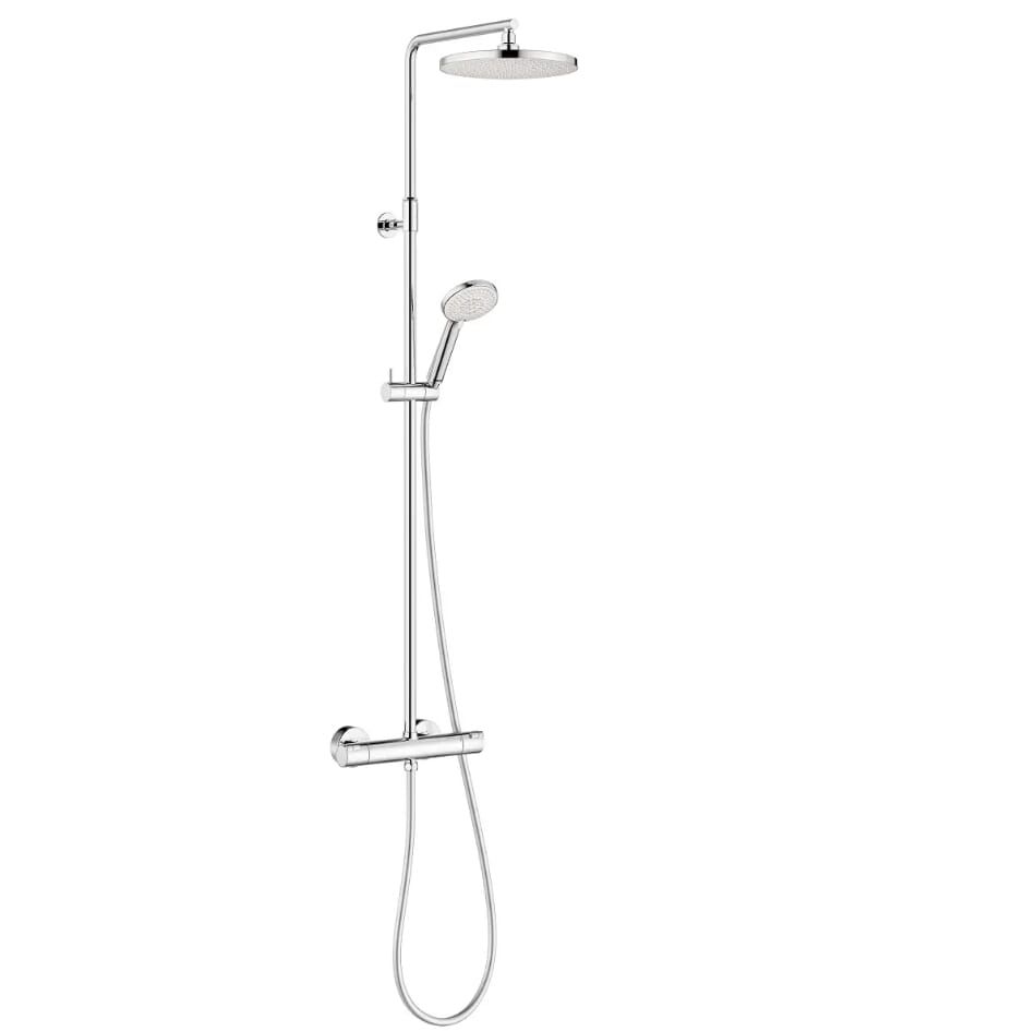 stort takdusjhode og hånddusj – og en termostatkran med skoldesperre som gjør