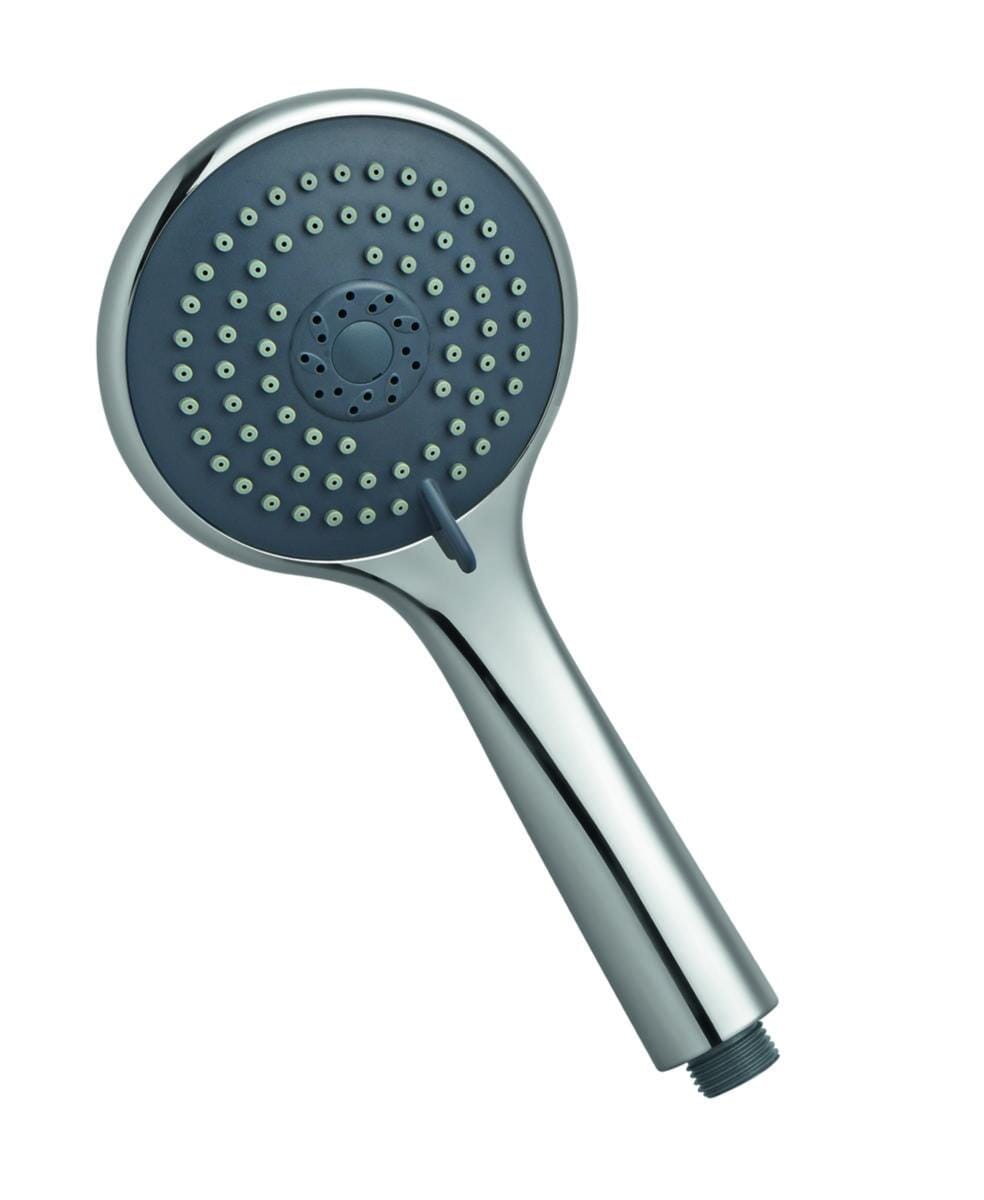 Hånddusj Lux III krom i ultratynn design. 110 mm med 3 stråletyper och antikalk funksjon. 1/2" tilkobling