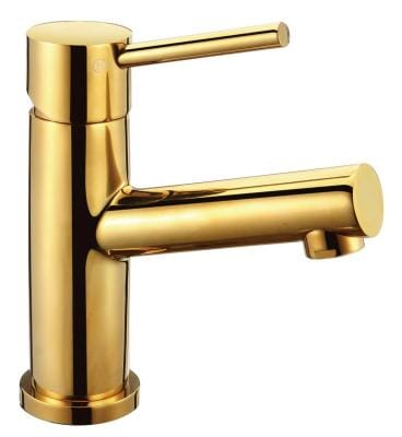 Servantbatteri i gull med energi- og vannbesparende perlator.