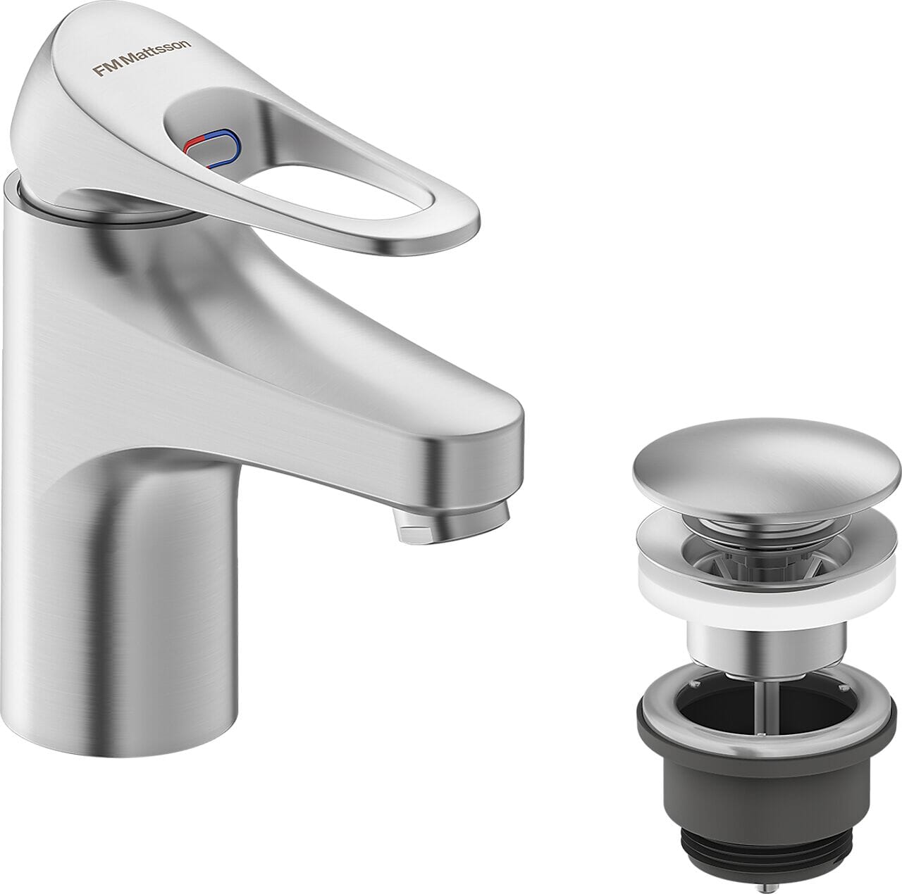 Servantbatteri med overflate i børstet stål fra FM Mattsson