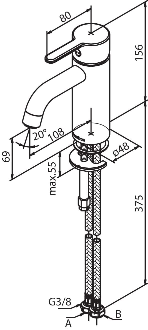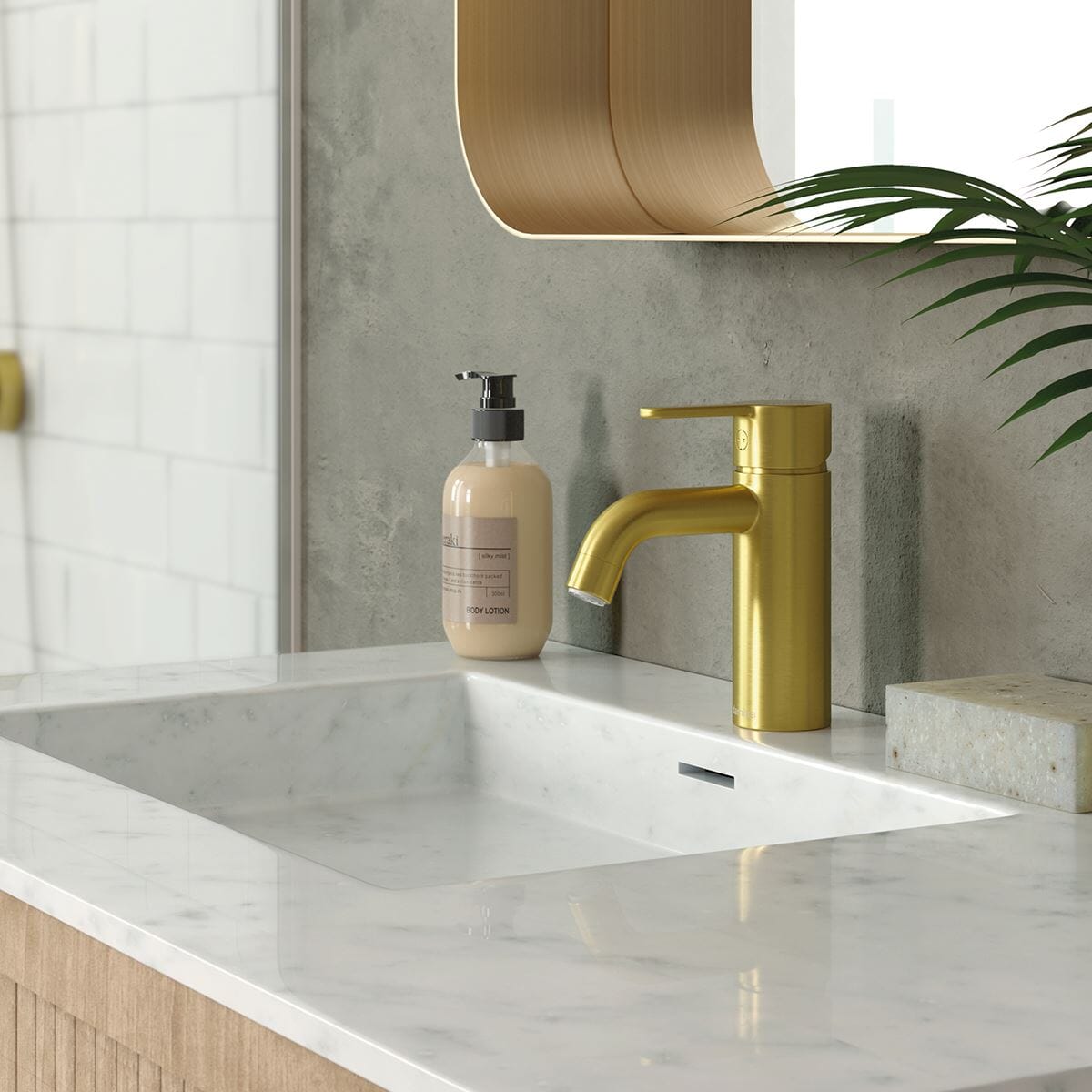 Servantkran med eco-save og skoldesperre. Vannmengde inntil 6 liter pr minutt. Ekstra holdbar PVD behandlet overflate.