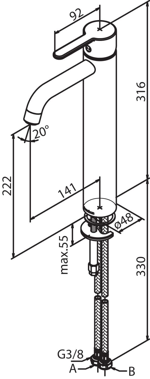 Høy servantkran for bolleservant. Med kaldstart og rub-clean. Ekstra holdbar PVD behandlet overflate.