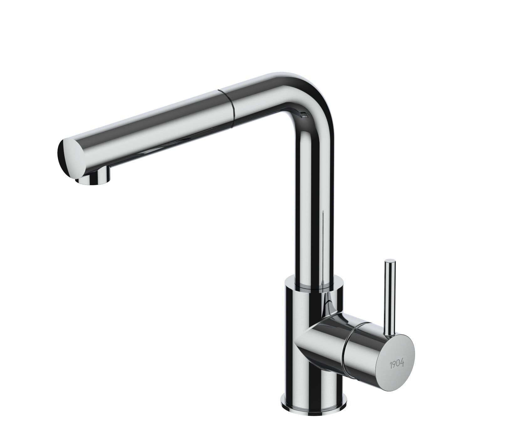 Kjøkkenbatteri med uttrekkbar hånddusj i krom utførelse.