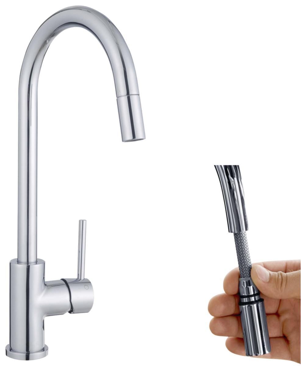 Azur kjøkkenkran med uttrekksdusj.Kombinerer det nyeste innen design med en rekke funksjoner som gir virkelige fordeler til kjøkkenet ditt.Uttrekkbar dusjhode samt kan roteres 120°.