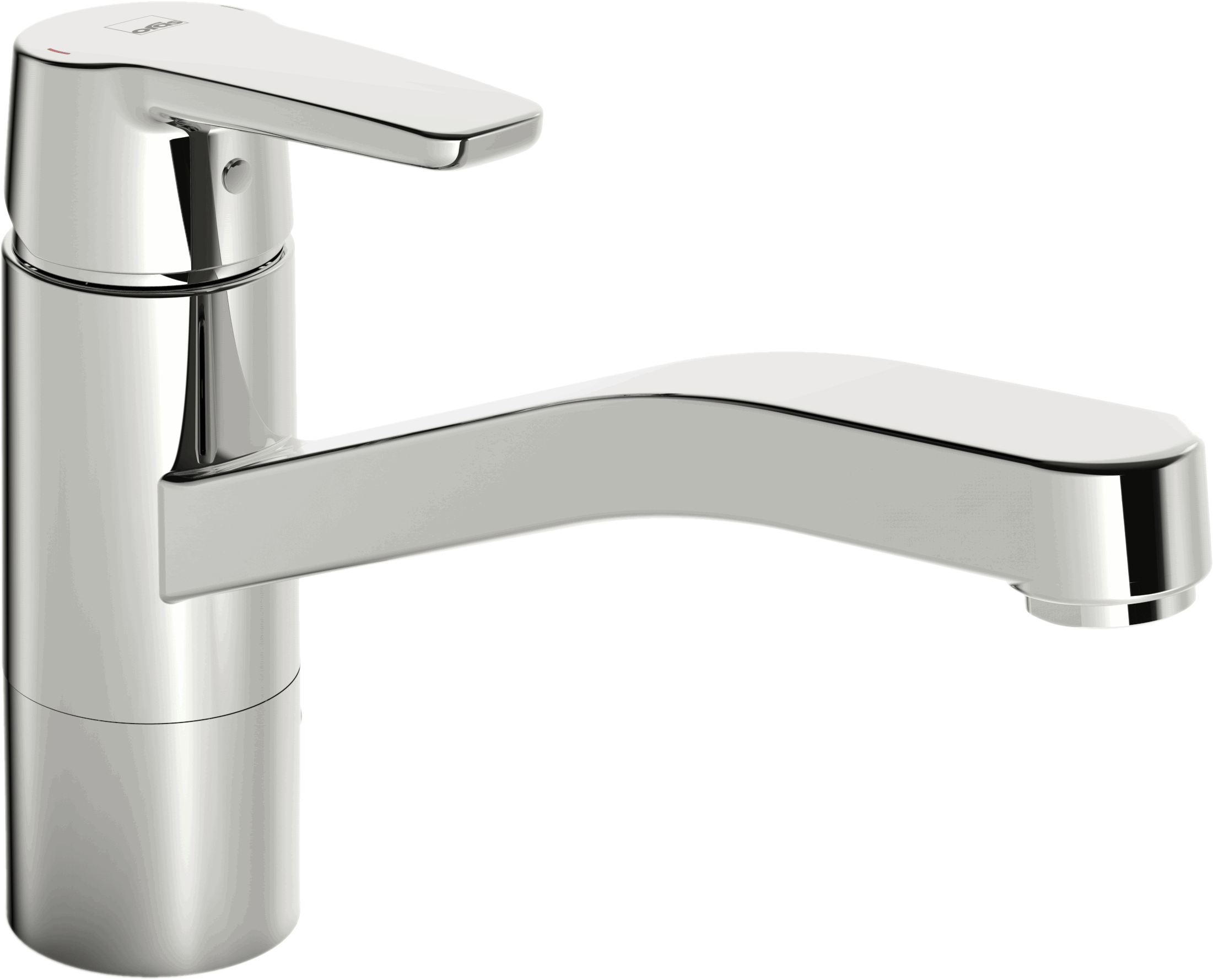 Kjøkkenkran med svingbar tut og perlator. Tutens svingradius er forhåndsinnstilt fra fabrikken til 120° (kan begrenses til 40°-80°). Det er også innebygd alternative begrensninger for vanntemperatur og maksimal vannmengde.