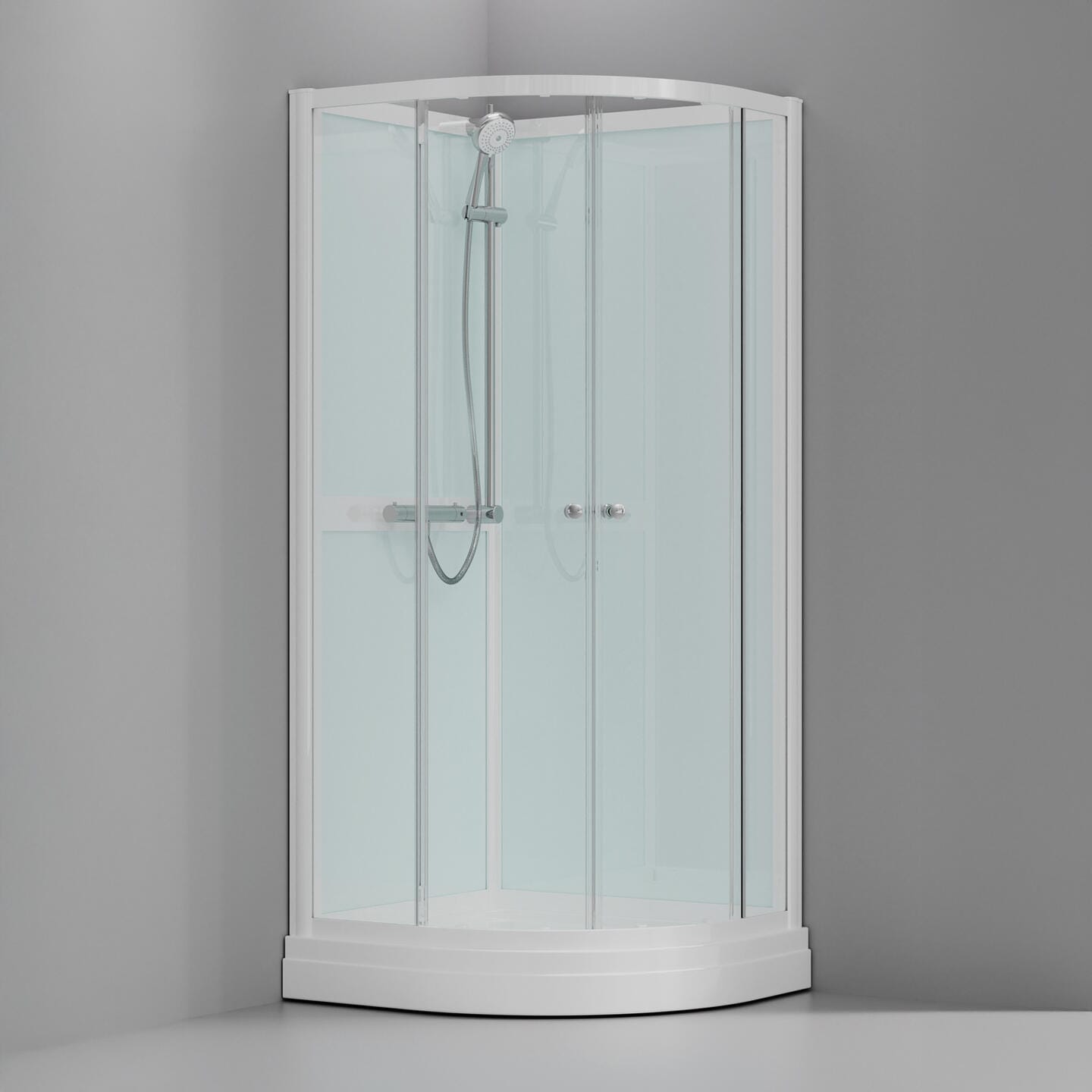 Quick One 80x90 cm venstre er en buet dusjkabinettmodell som utnytter hjørnet godt og gir