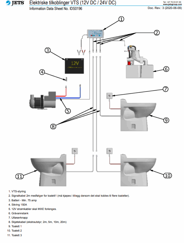 Jets™ skjøtekabel, benyttes mellom VTS og toalett.