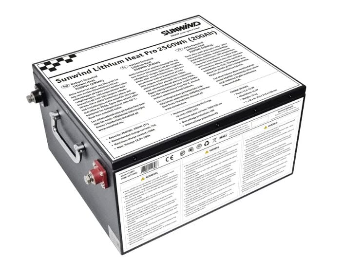 Sunwind Lithium Heat 200At benytter prismatiske LiFePo4-celler og er utstyrt med en