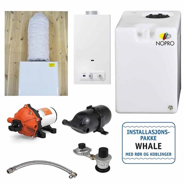 Her er en komplett vannpakke som sørger for varmt vann til dusjen, oppvaskbenken, eller der du måtte trenge det.