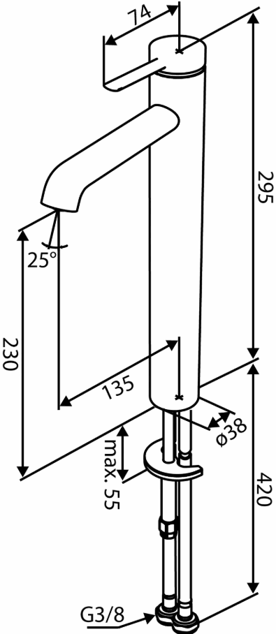 Iris servantkran høy i børstet stål er en slank og elegant kran laget for bolleservanter og