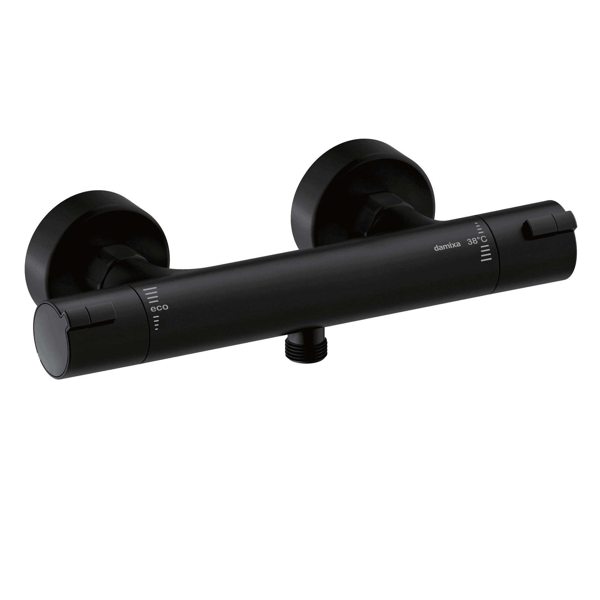 Gi dusjen en trygg og stabil temperatur – med en pen, kompakt termostatkran i sort matt.