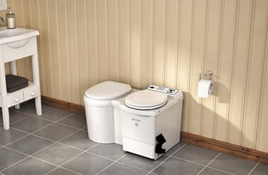 SanMarin er toalett med innbygget kvern og pumpe. Det krever 12 / 24 volt strøm. Avfall blir kvernet og pumpes via 32mm ledning til tett tank eller tilsvarende.