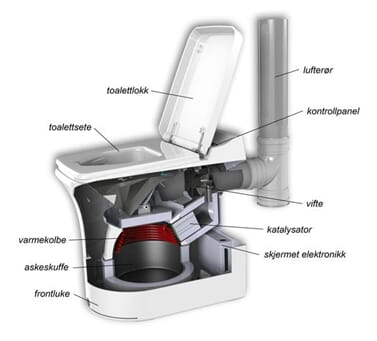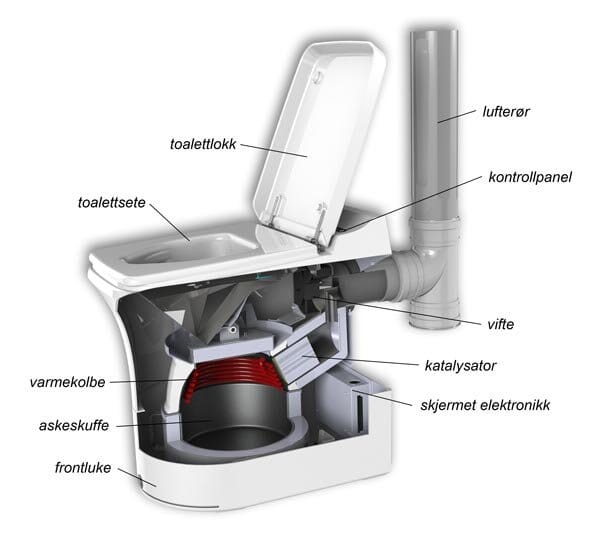 Forbrenningstoalettene fra Cinderella leveres i standard utførelse med strøm og med gass.