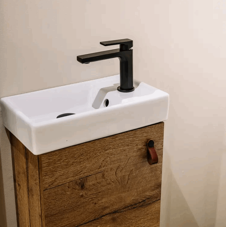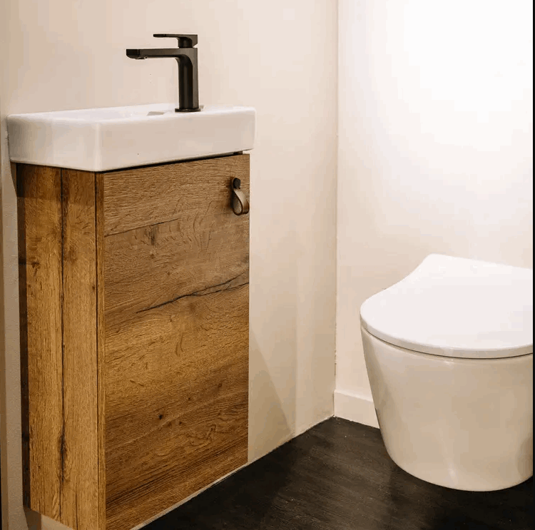 Dette møbelsettet er laget for de typiske “trange” sonene: toalettrom under trapp,