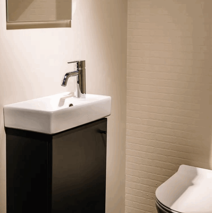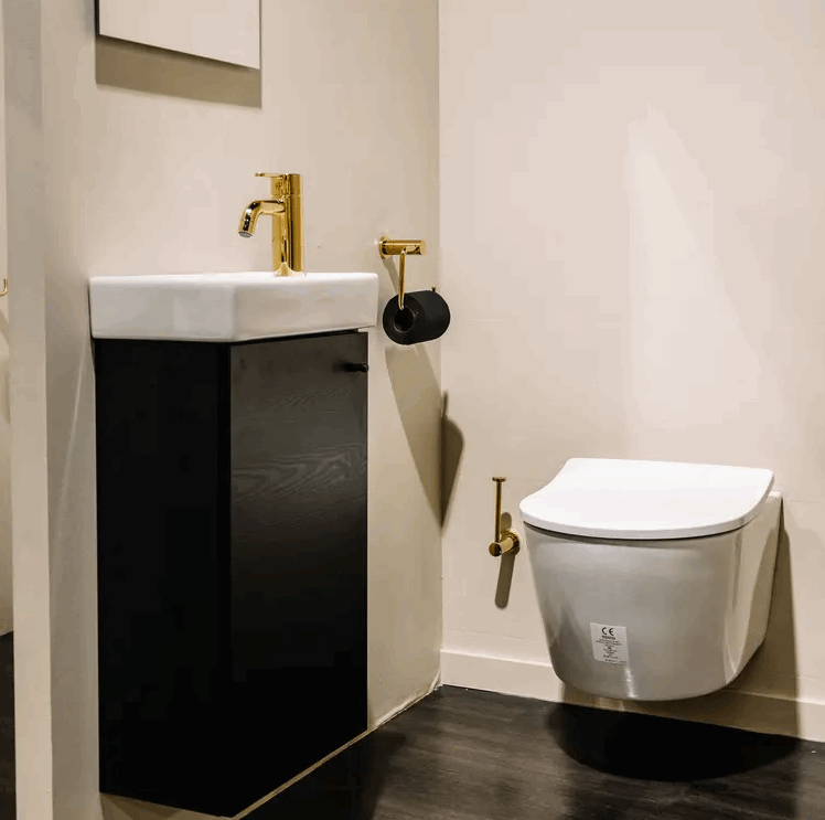 Dette møbelsettet er laget for de typiske “trange” sonene: toalettrom under trapp,